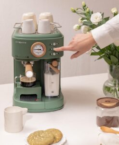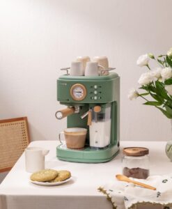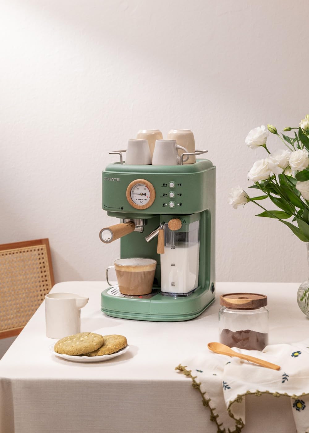 Create / Thera Retro Pro Semi-Automatic Espresso Coffee Maker, Green Sage, 20 Bar, Milk Tank, Drip Tray, Two Spouts, Capacity 1.5 L, for Ground Coffee, 1250 W