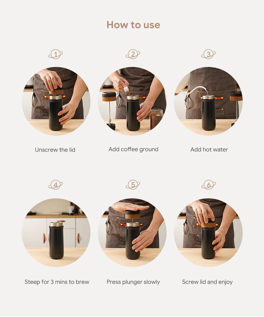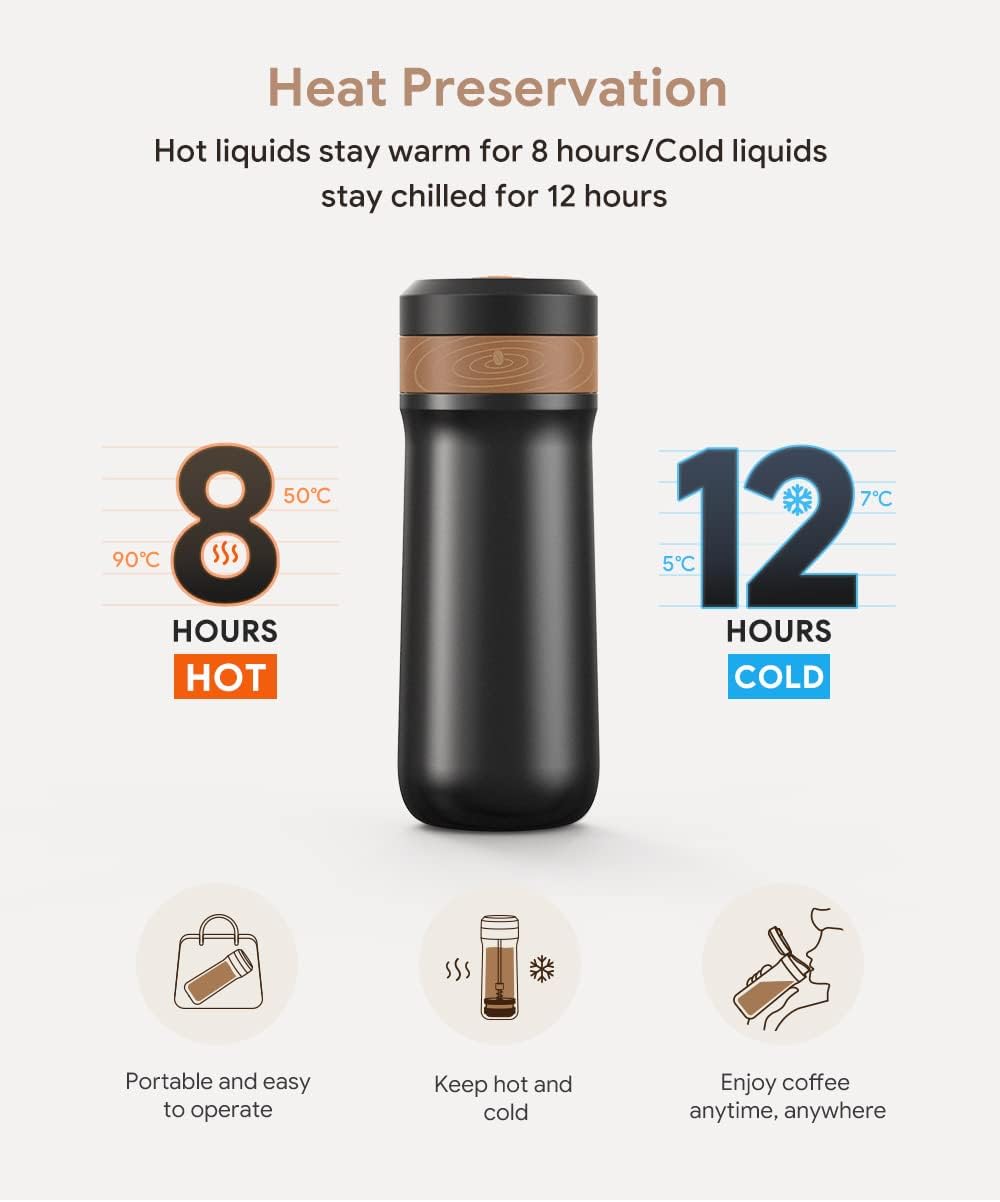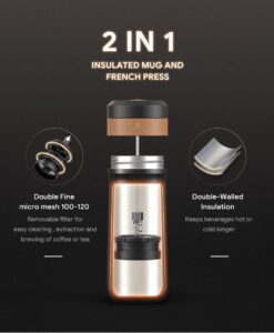 RECAFIMIL – Draagbare French Press – Koffiezetapparaat – Reizen – Rvs Koffiemok – 12oz